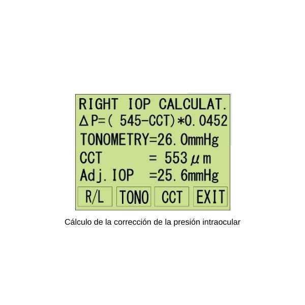 SP-100 es un paquímetro útil que puede calcular la corrección de la presión intraocular según el grosor de la córnea. Permite obtener una medición automática con facilidad.